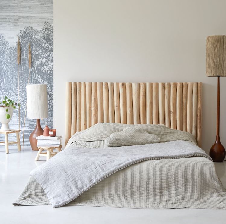 Para complementar las paredes de microcemento, puedes añadir un cabecero de madera natural o una pared de ladrillos a la vista, que añadirá un toque adicional de textura al espacio.